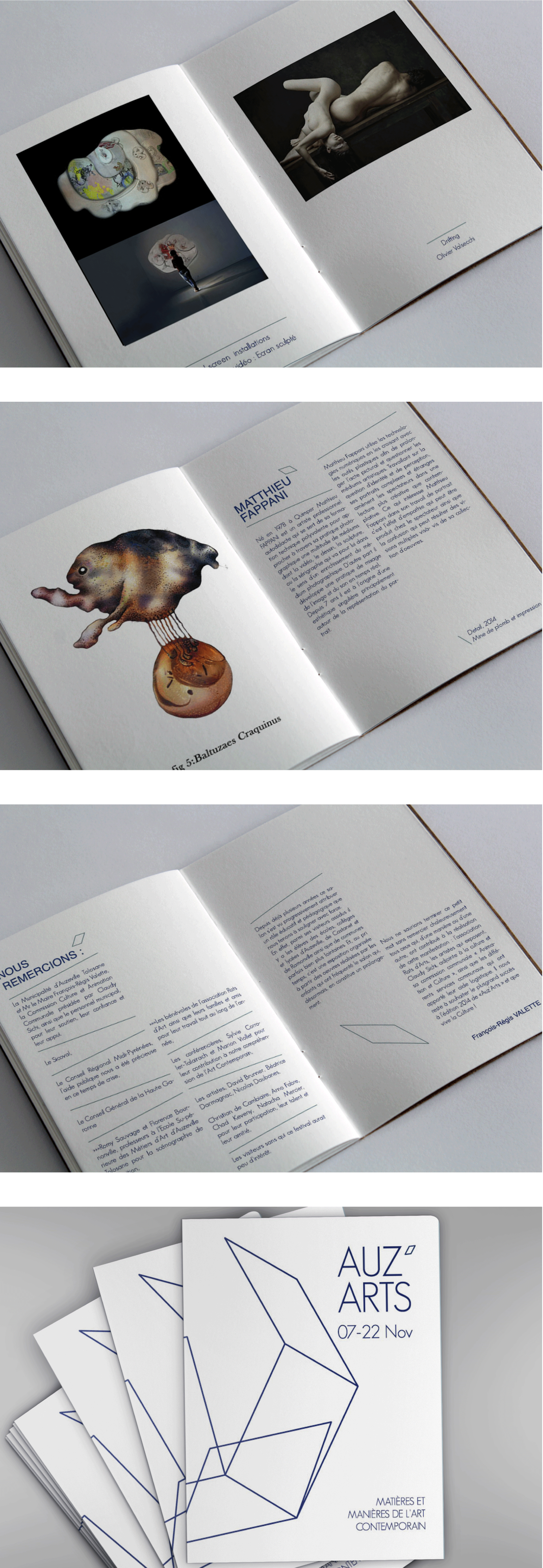 Création de l'identité visuelle de Auz'Art lors d'un évènement. Création de catalogue pour la présentation d'artistes lors de l'exposition.